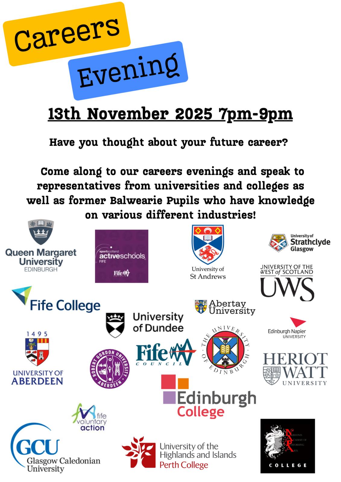 We will be welcoming plenty of representatives from Scottish universities and colleges as well as other local employers. Please consider coming along and chatting to them about your options