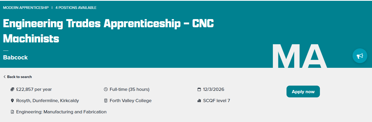 Apply Here: Babcock Engineering Trades Apprenticeship - CNC Machinists