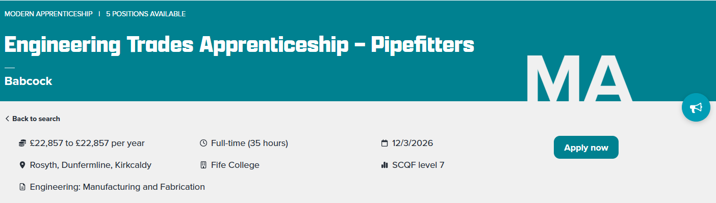 Apply Here: Babcock - Engineering Trades Apprenticeship - Pipefitters